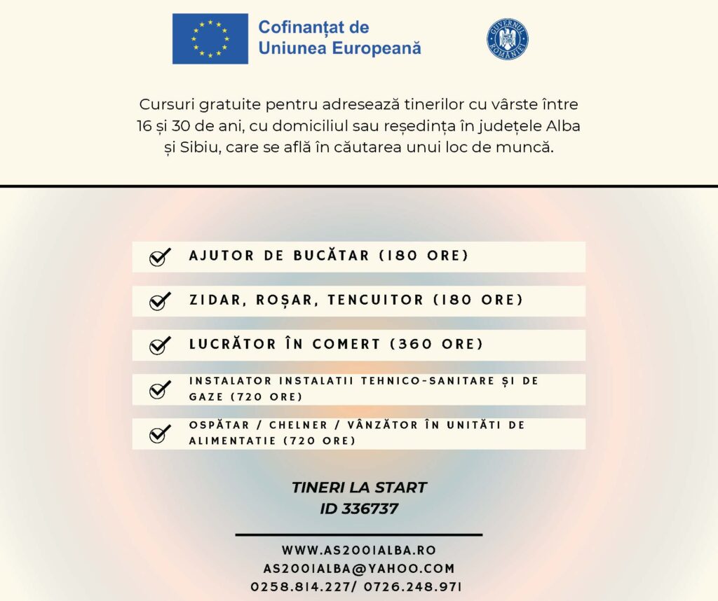 • Lista cursurilor organizate de Asociatia AS 2001 Alba Iulia